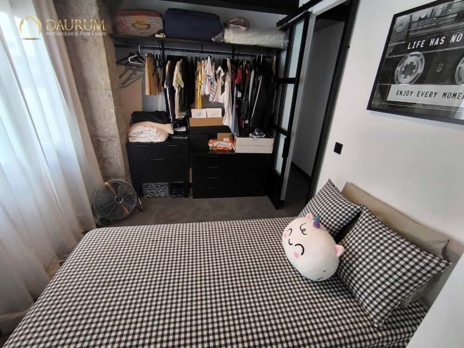 1 dormitorio con armarios empotrados.